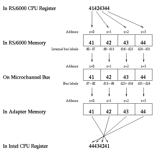 memory containg 0x41, 0x42, 0x43, and 0x44, an Intel