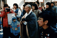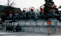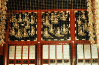 One of the customs is to write a prayer on a piece of paper and tie it to a tree. The little pieces of paper are pretty much all over the temple now. There's also a bunch of stickers -- I don't understand what they are.